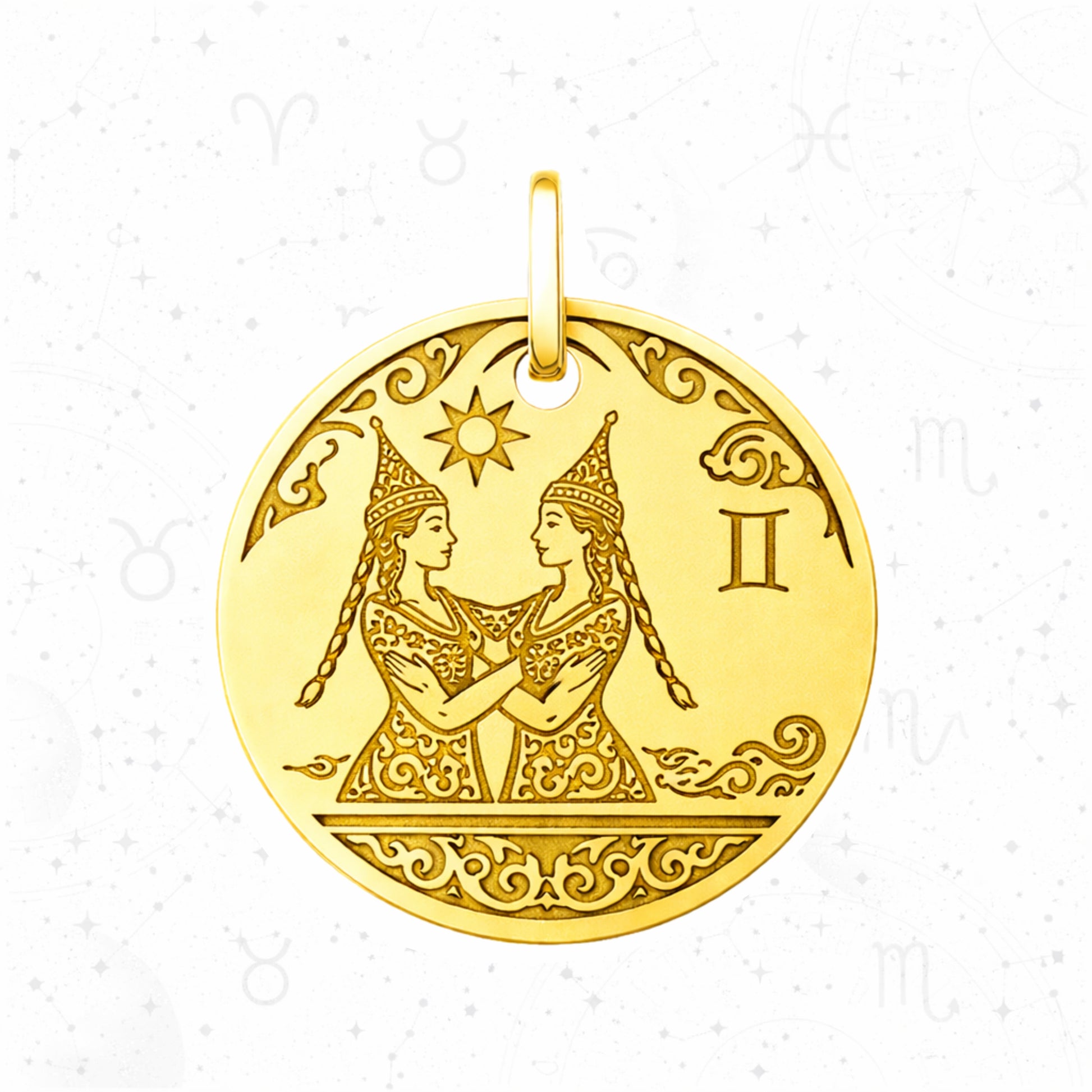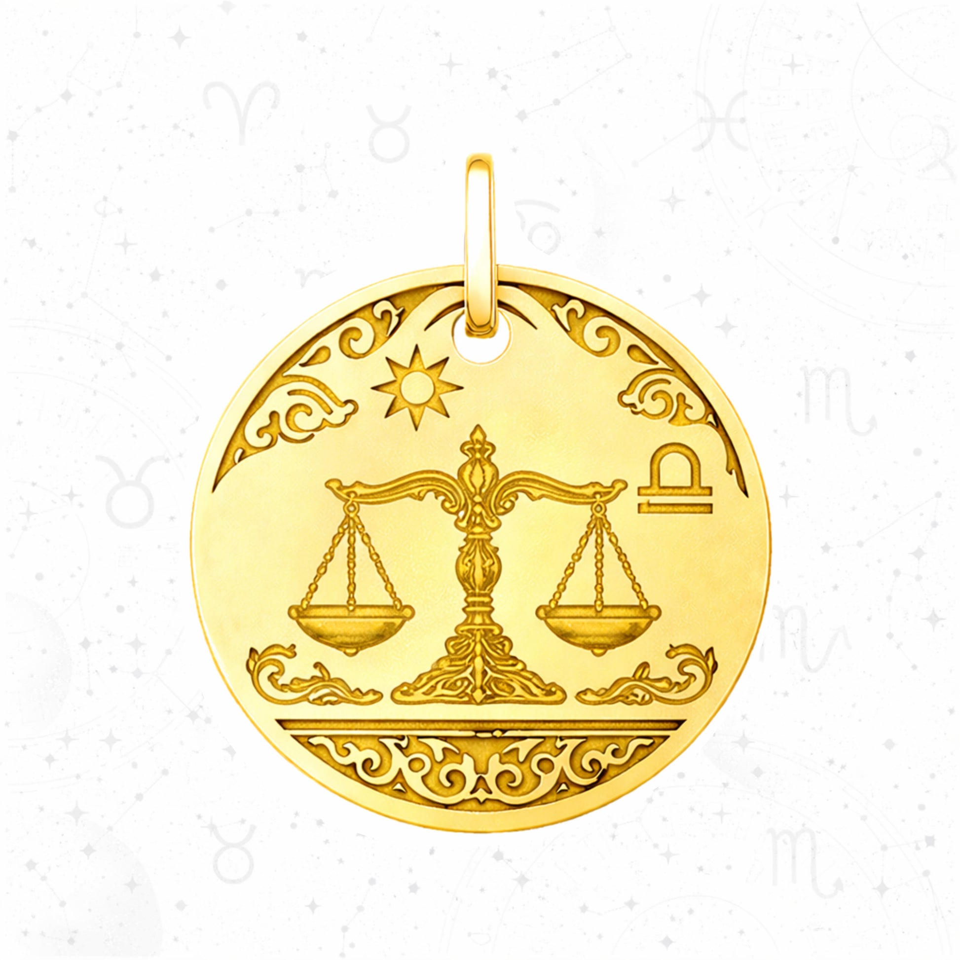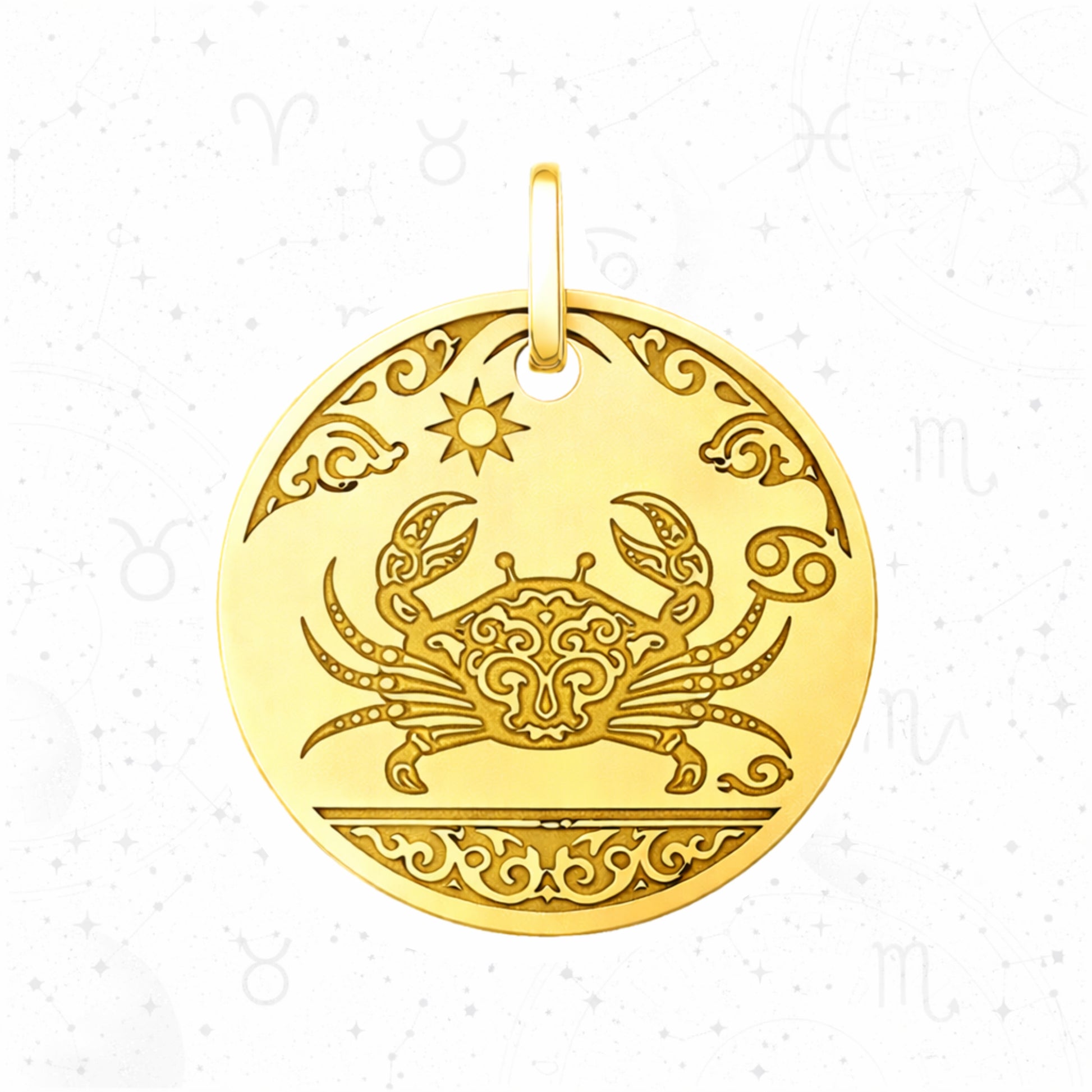 Elegant circular pendant featuring zodiac signs with intricate sacred ornamental patterns. Each design showcases a different astrological symbol - Aries, Cancer, Pisces, Libra, Capricorn, and Scorpio - beautifully engraved with traditional motifs.